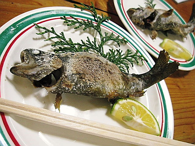 釣ったお魚は、施設の人に内臓を処理してもらってから持ち借ることが出来ますが、施設内の食事処で塩焼きにしてもらうことも出来ます。