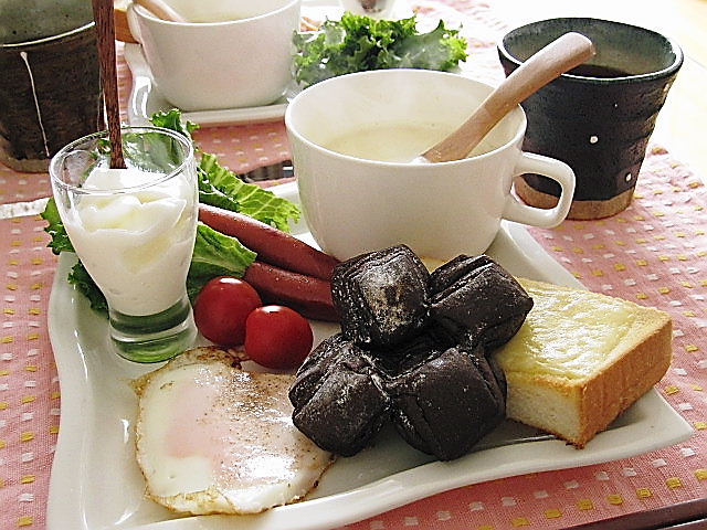 掃除のあとジュースとパンを頂いたので、ブランチに流用してみました↓↓