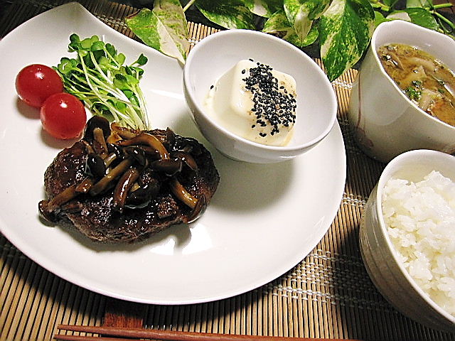 メインはハンバーグだけど全体的に和食っぽいメニューにしたから、カテゴリーは和食です。