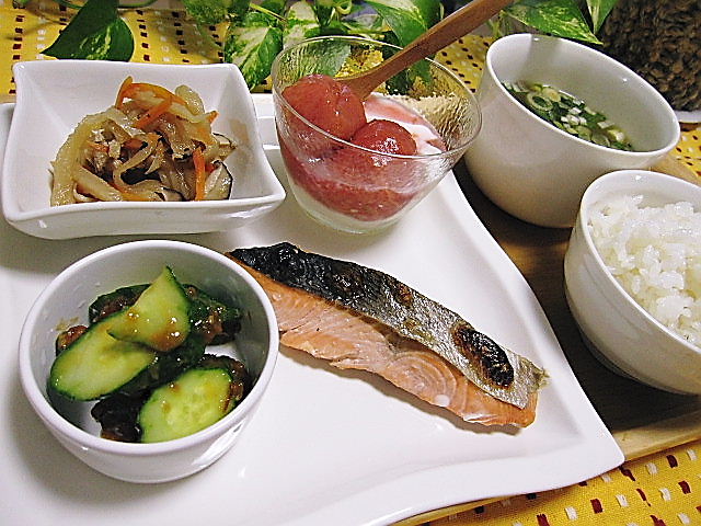 あとは近所のスーパーで秋鮭を買って、シンプルに塩焼きに。