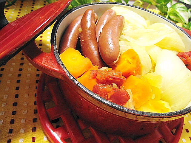 出来上がったのは、ウィンナー入りの野菜と芋の煮物。