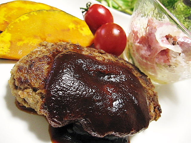 ホントは粗挽きハンバーグにしたかったけど、フープロにかけ過ぎて普通のハンバーグになっちゃったyoー☆